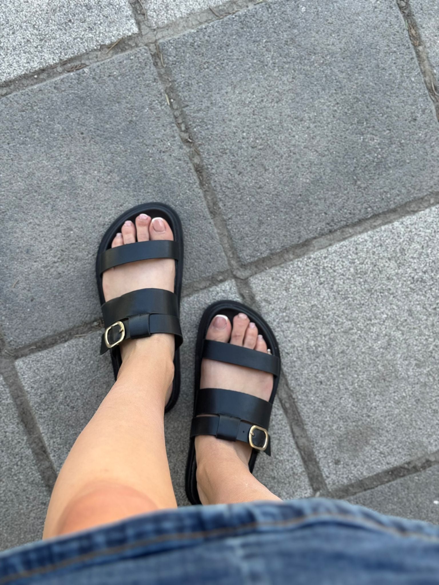 Melodi Ayakkabı’nın yeni sezon siyah sandalet modeli, altın tokalı detaylarıyla hem zarif hem güçlü bir duruş sunuyor.