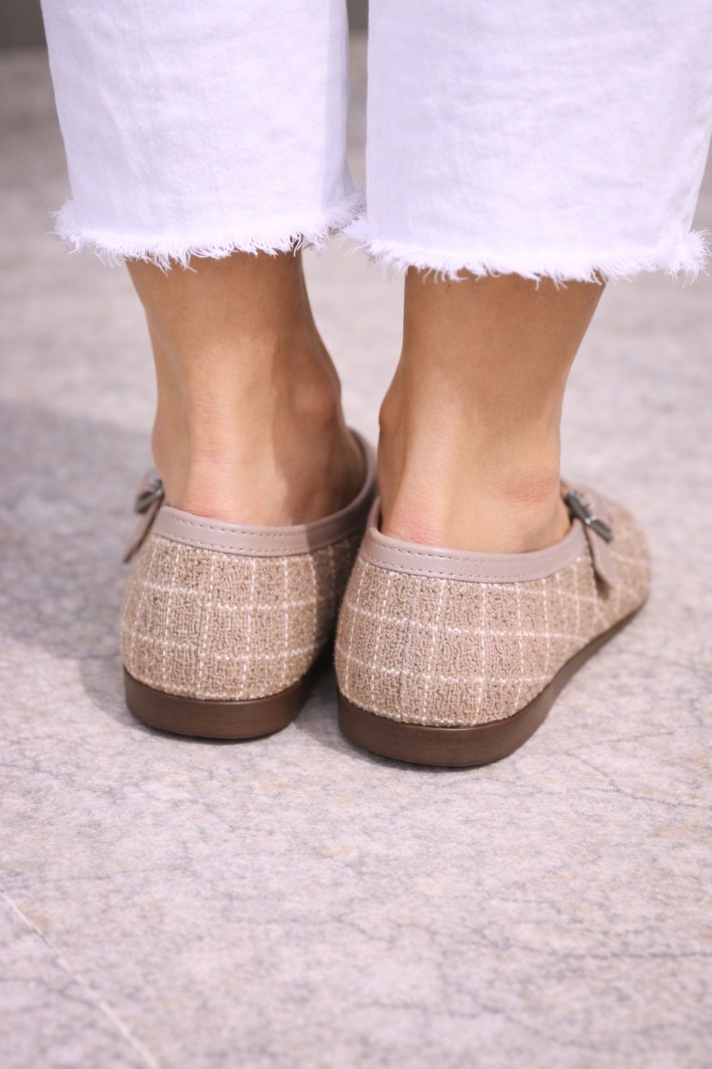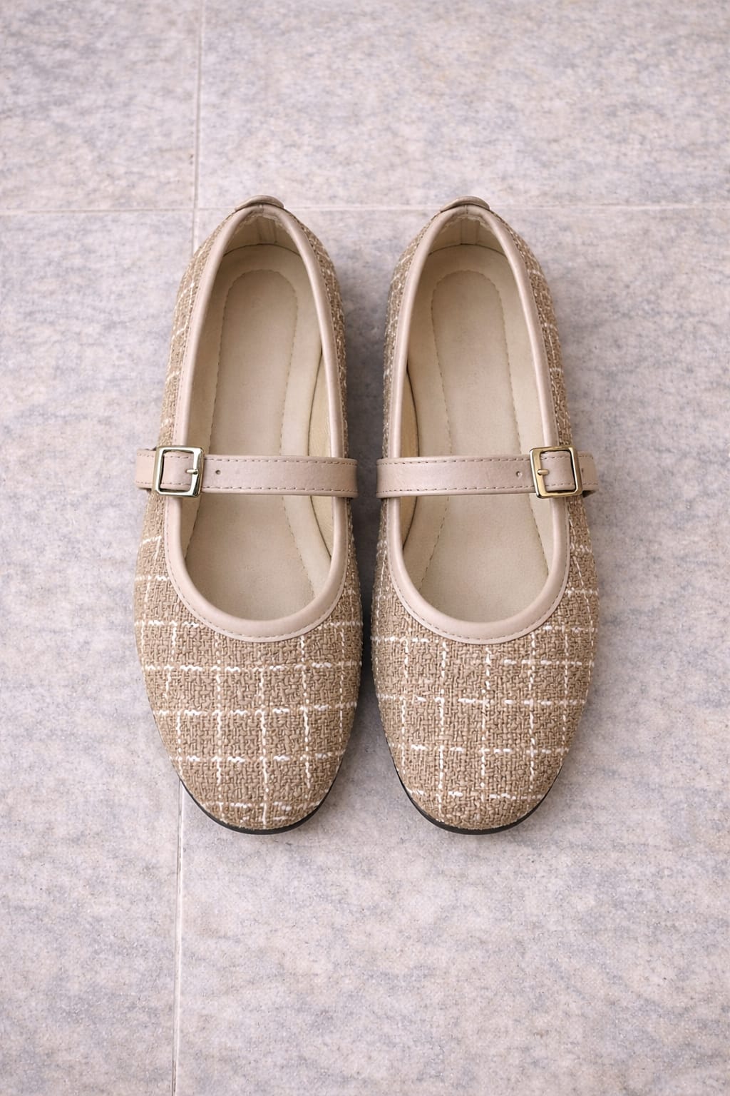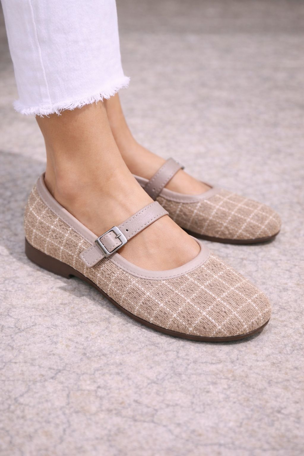 Kadın Bej Simli Dokulu Tokalı Günlük Rahat Babet Ayakkabı