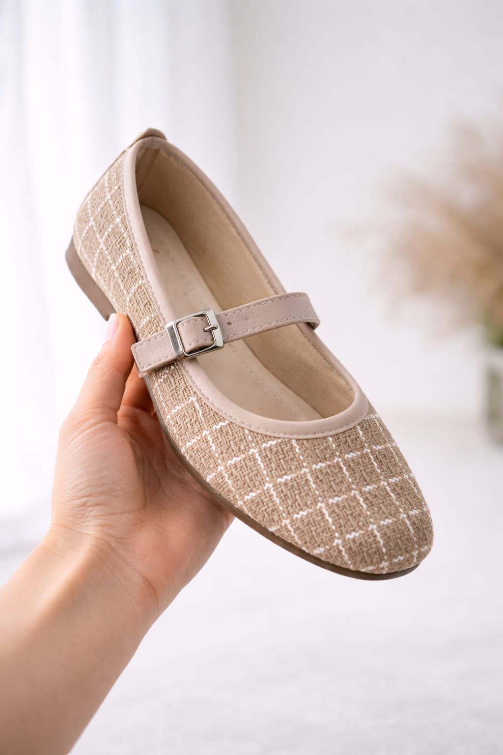 Günlük kullanıma uygun olarak tasarlanan bu bej babet, simli dokulu yüzeyi ile şık ve dikkat çekici bir görünüm sunar. Tokalı yapısı ayağı iyi kavrayarak gün boyu rahat ve güvenli bir kullanım sağlar. Hafif ve rahat tabanı sayesinde uzun süreli kullanımlarda konfor sunmaya yardımcı olur.