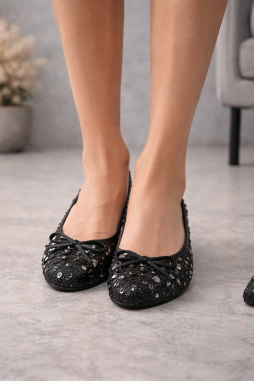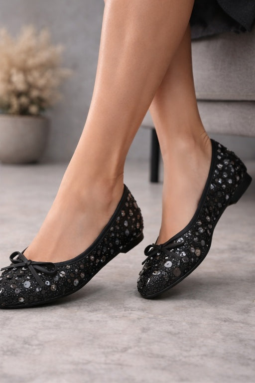 Kadın Payetli Fiyonklu Günlük Rahat Babet Ayakkabı