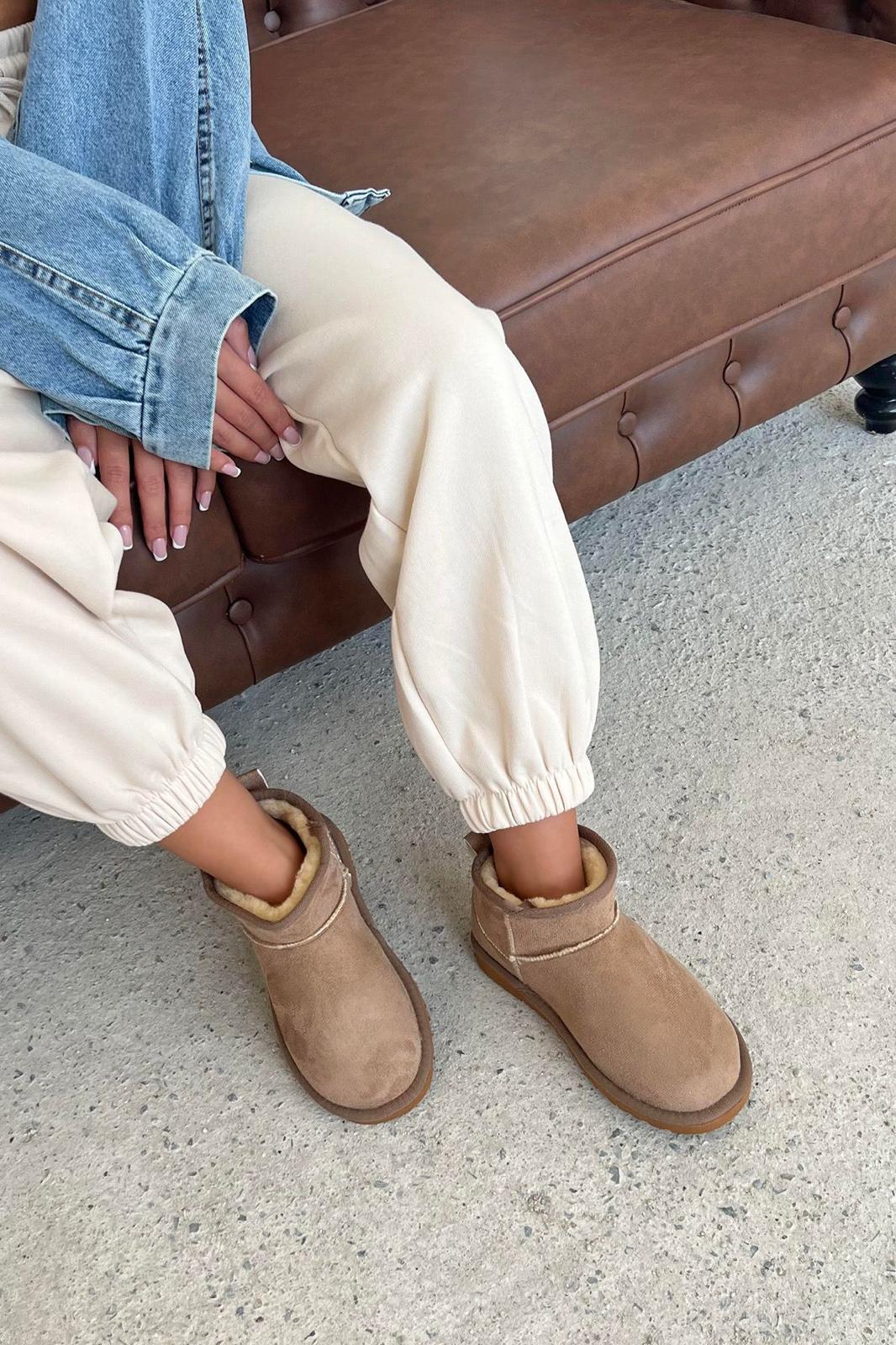 Mini Alçak Taban Süet İçi Kürklü Kadın Bot